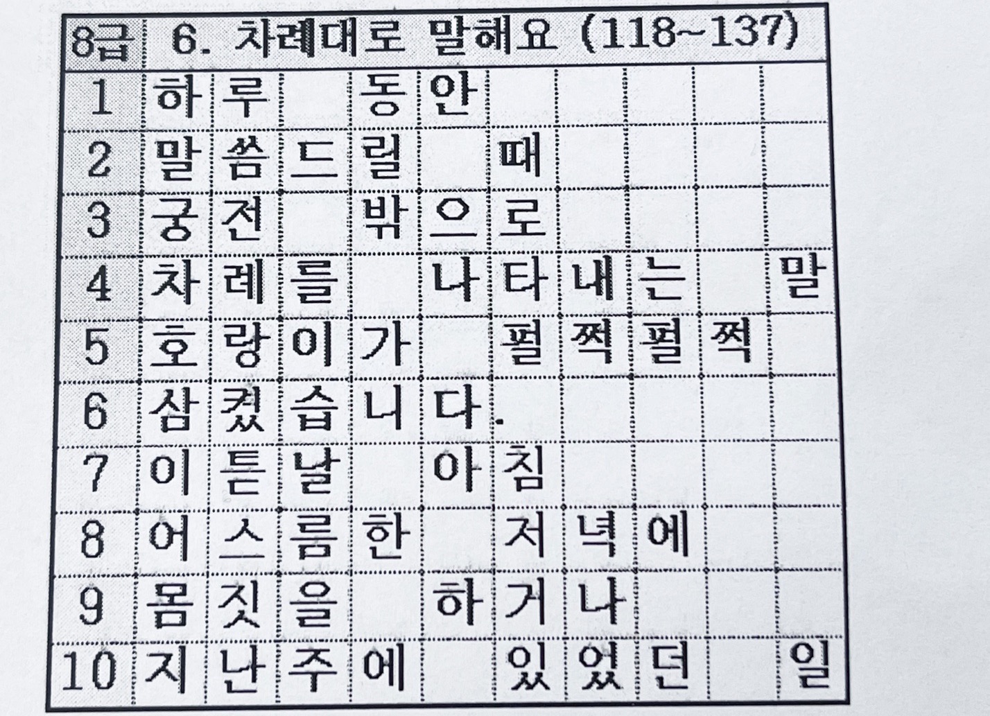 8급 6. 차례대로 말해요 (118~137)