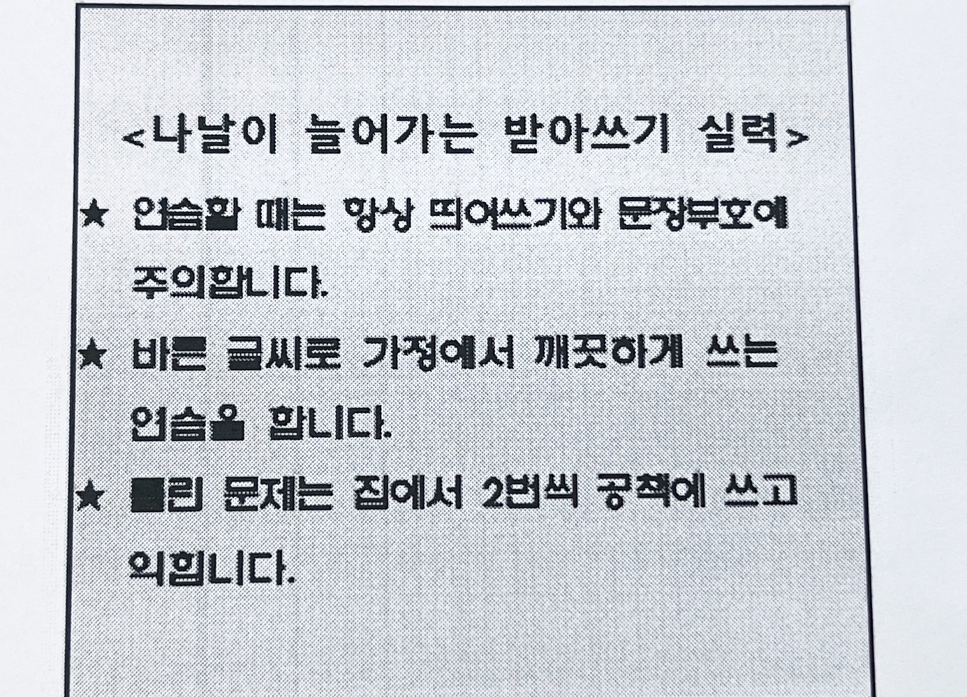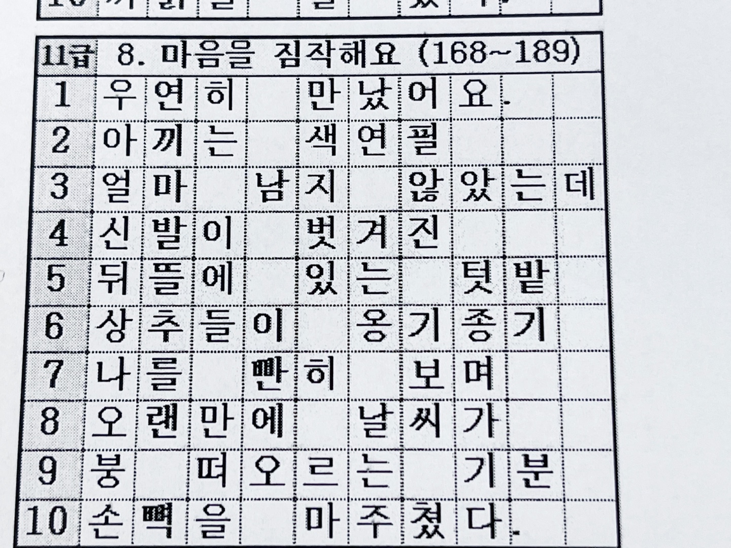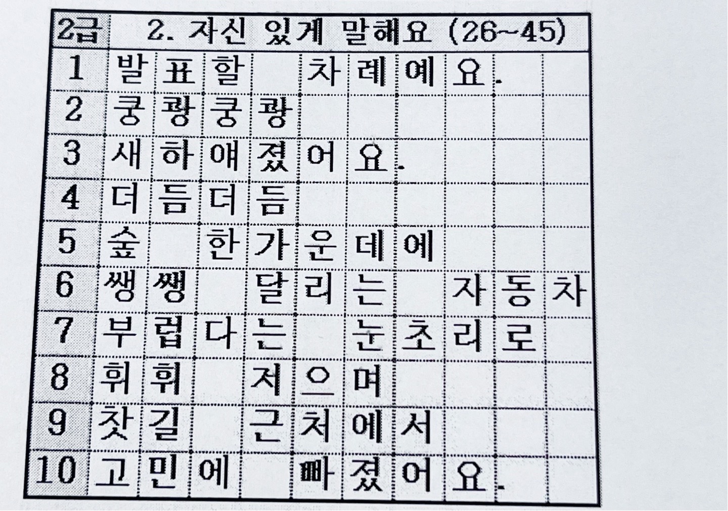 초등학교 2학년 받아쓰기 급수표