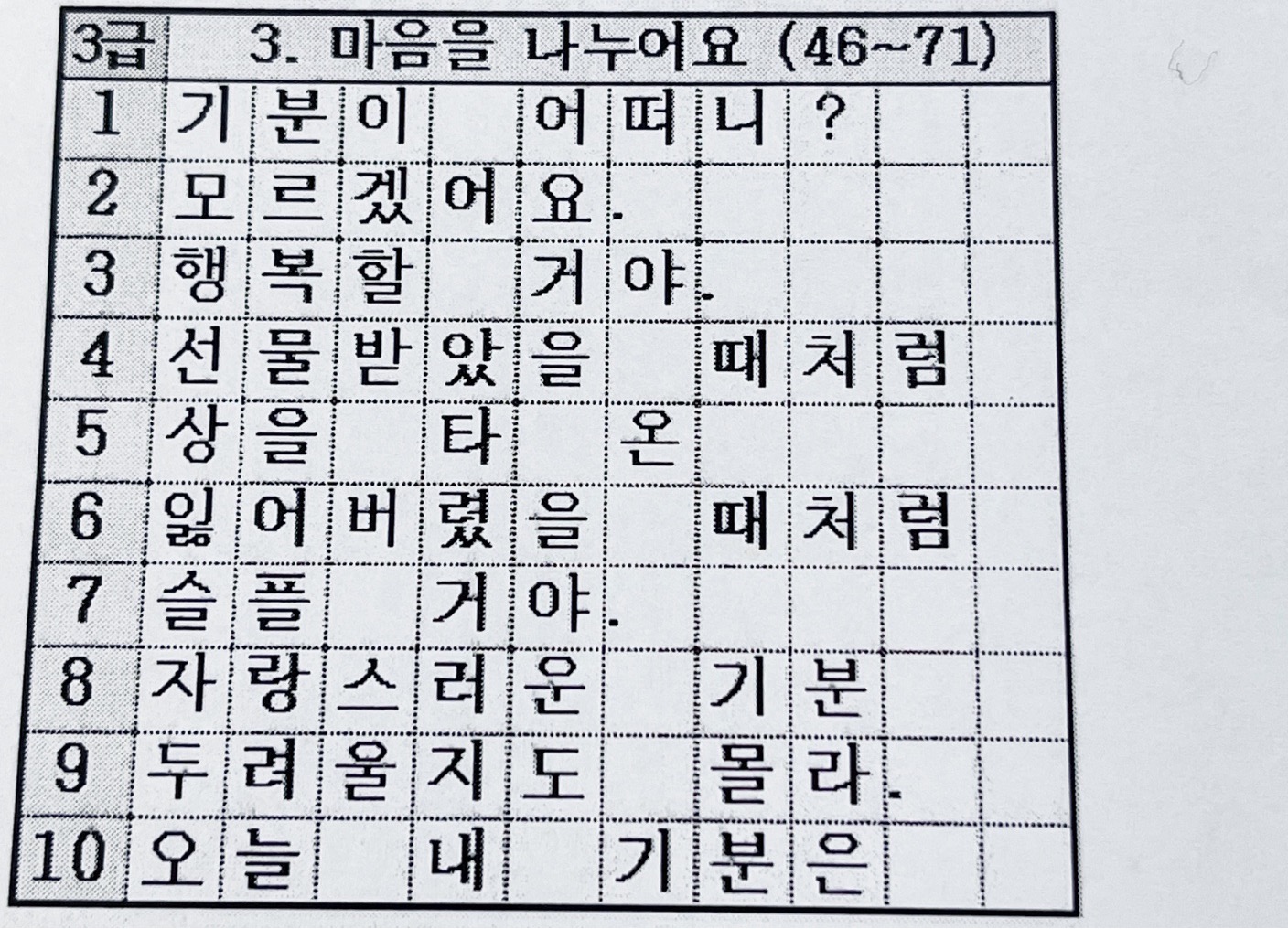 3급 3. 마음을 나누어요 (46~71)
