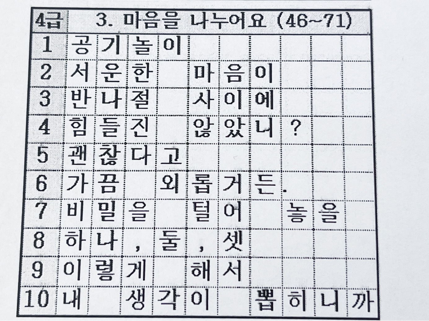 4급 3. 마음을 나누어요 (46~71)