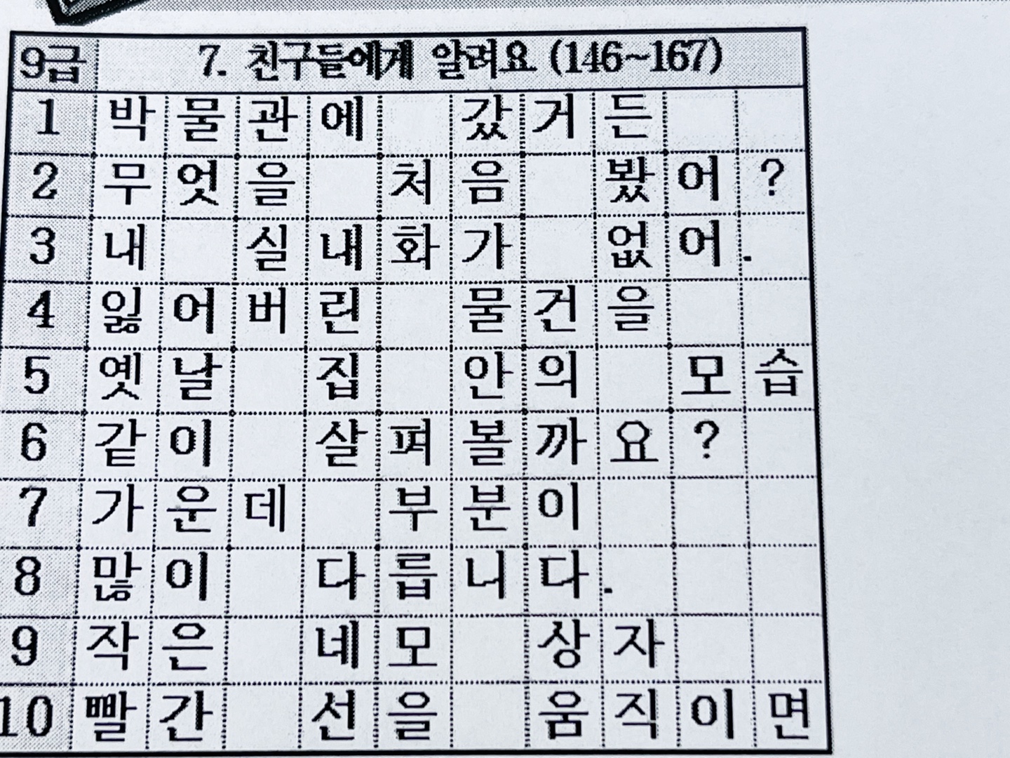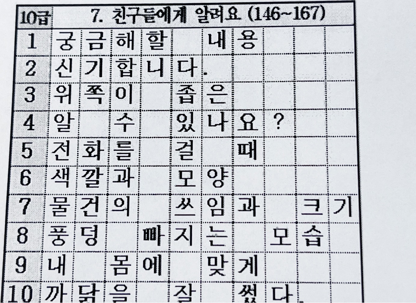 10급 7. 친구들에게 알려요. (146~167)