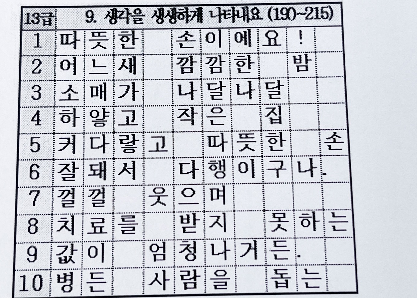 13급 9. 생각을 생생하게 나타내요 (190~215)