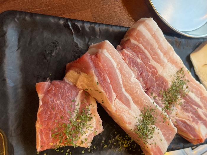 인원수대로 삼겹살과 목살을 시키고, 아이들 수대로 공기밥을 주문했습니다.