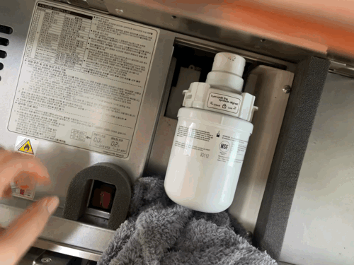 정수기 필터를 뜯습니다.
