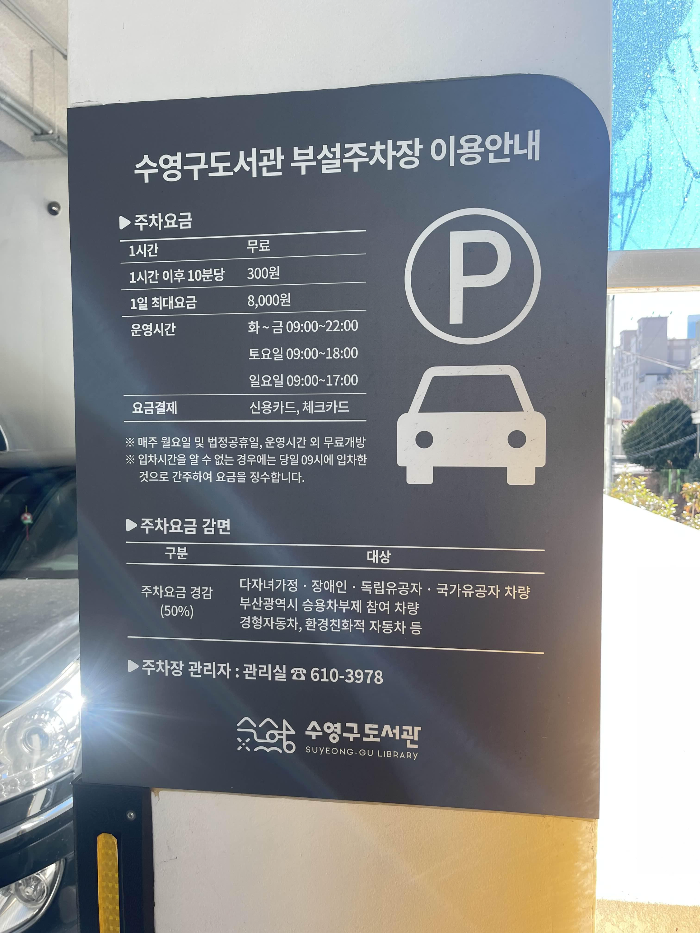 부산 2자녀 다자녀카드 공영주차장 50% 다자녀할인 주차요금할인 금샘도서관 수영구도서관 부설주차장 이용 할인