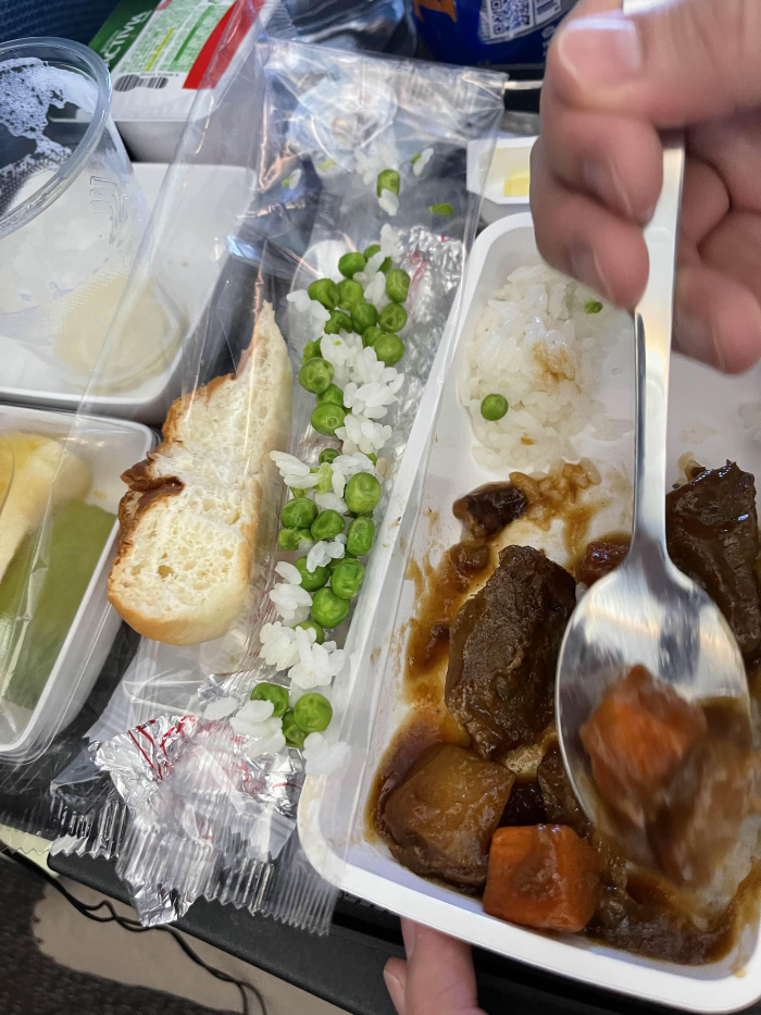 -메인식사 : 두가지중 선택이었는데 완두콩밥과 비프(양념갈비맛) 또는 에그 프리타타 (브런치처럼 보여서 택했는데 다들안먹음