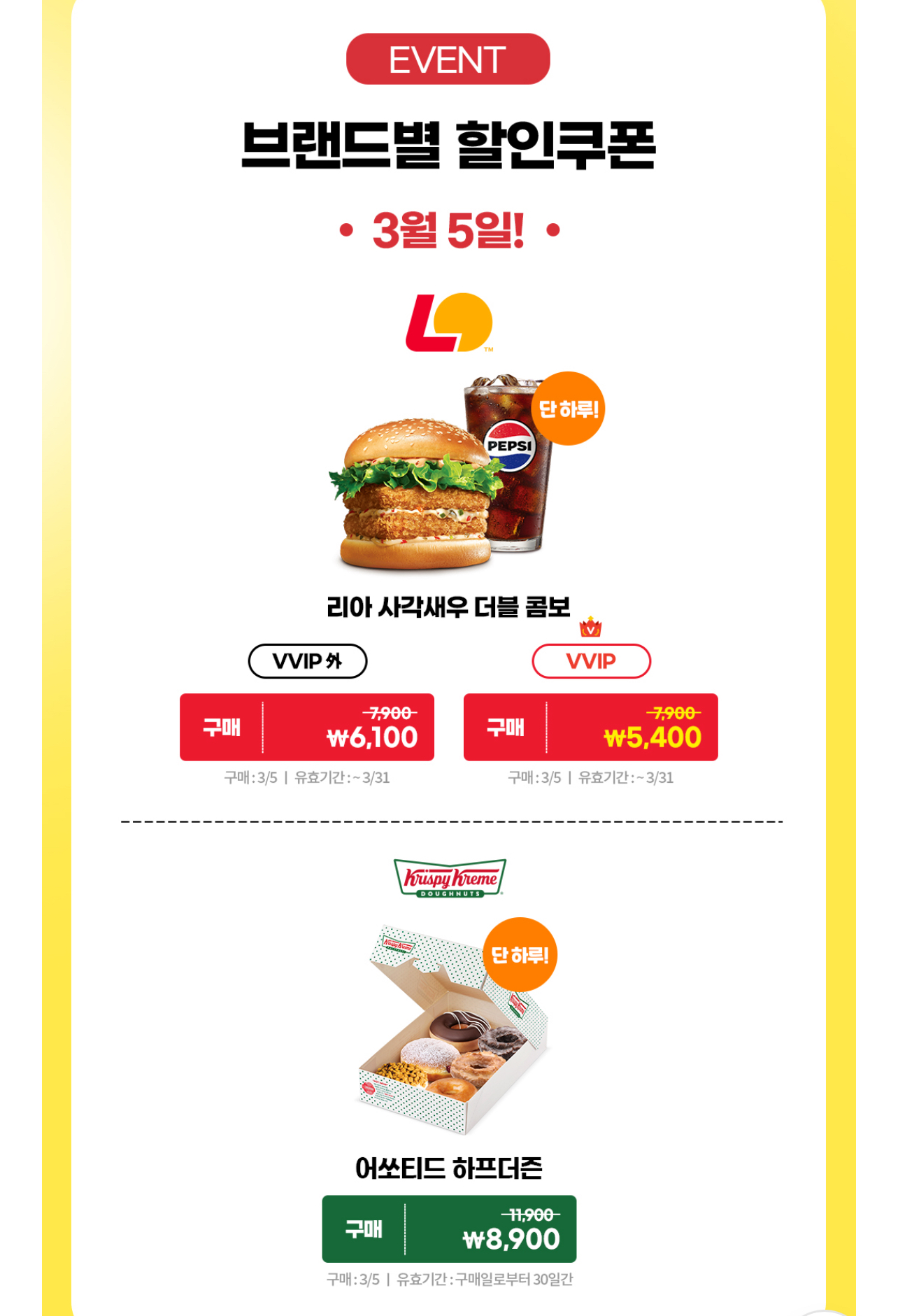 ㆍ쿠폰 다운 후 사용 시 해당 메뉴를 할인가로 구매 가능