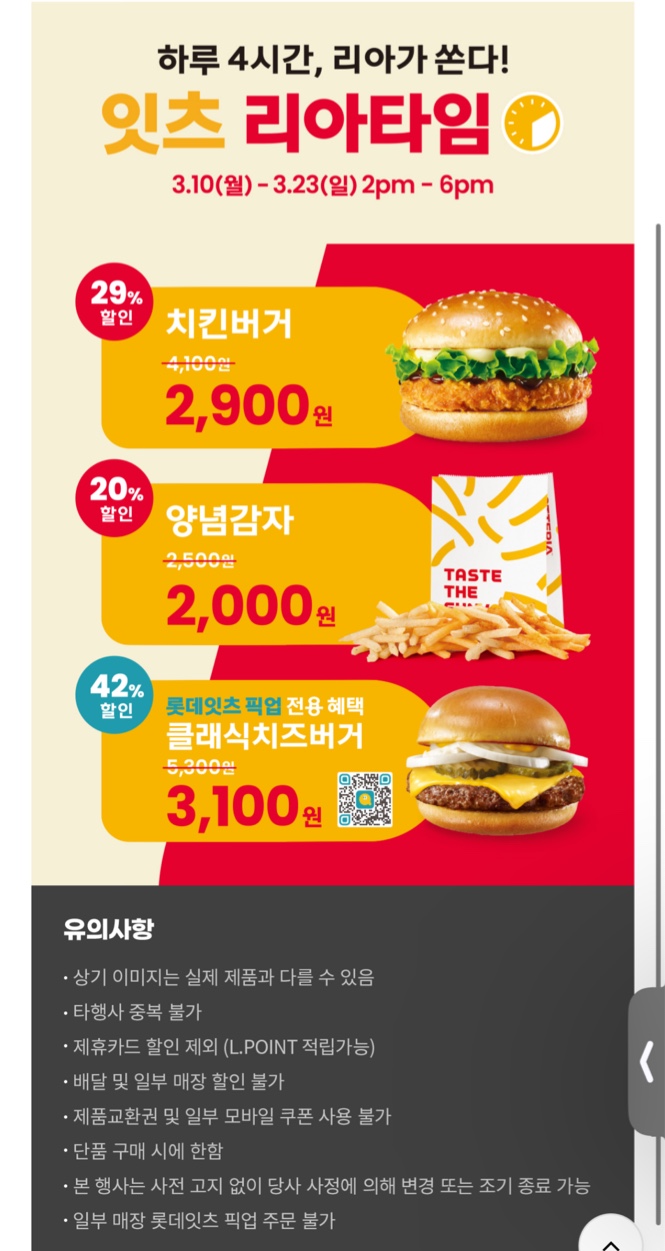 ㆍ구성 : 리아 불고기+치킨버거+양념감자+치즈스틱+콜라(R)2개