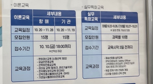 2025 경력 해기사 승선근무 복귀 지원 사업 / 하반기 교육생 모집