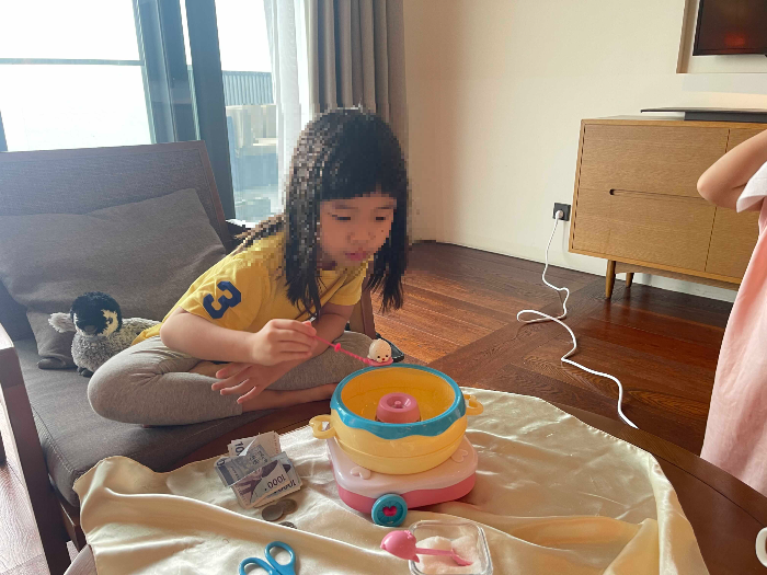 왜 솜사탕 장난감을 여기까지 가지고 온건지