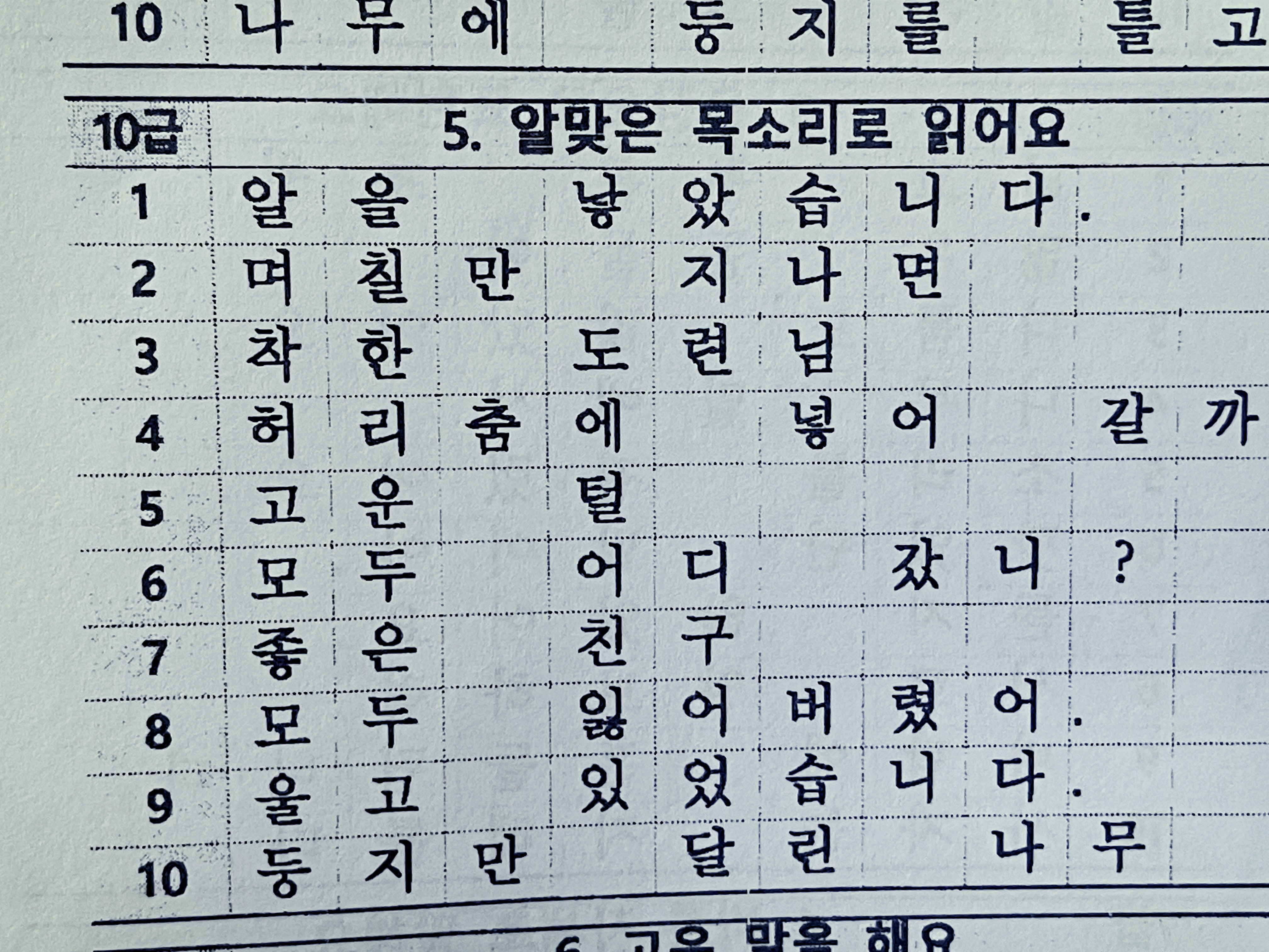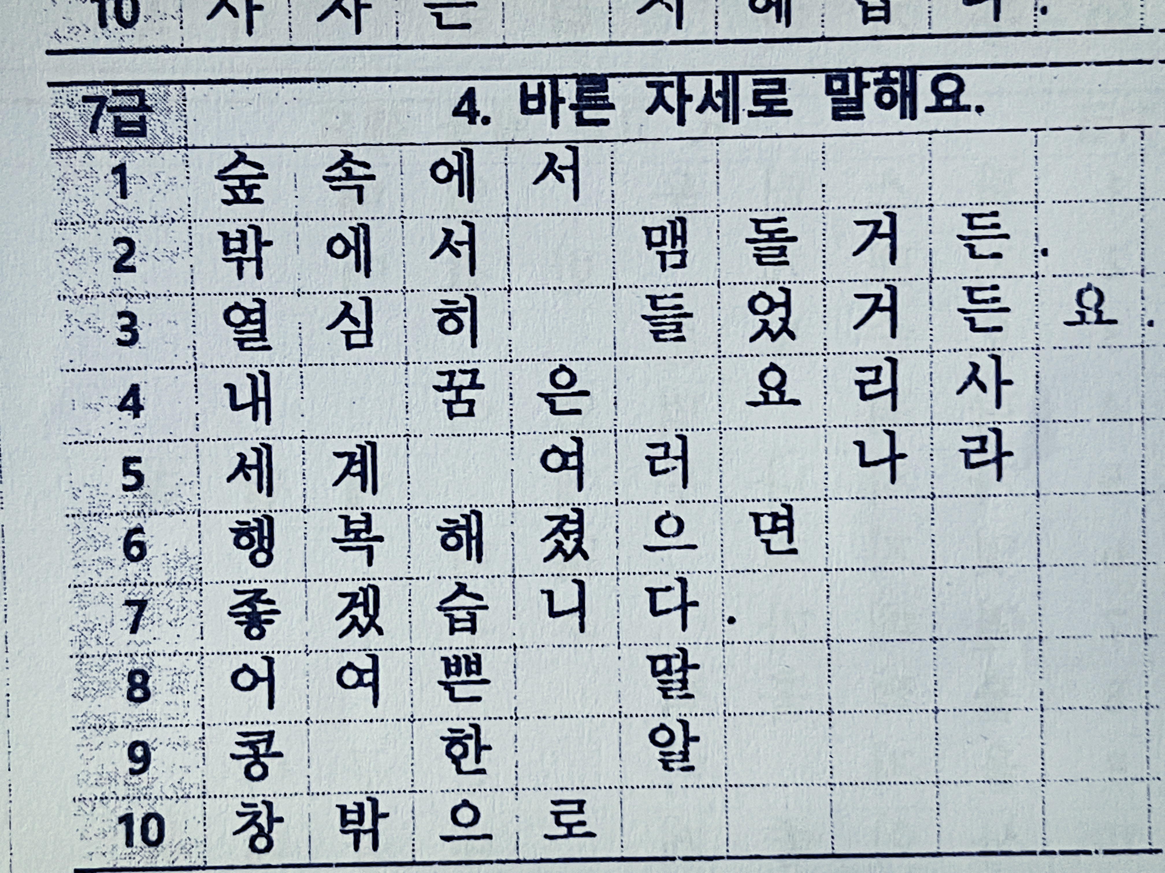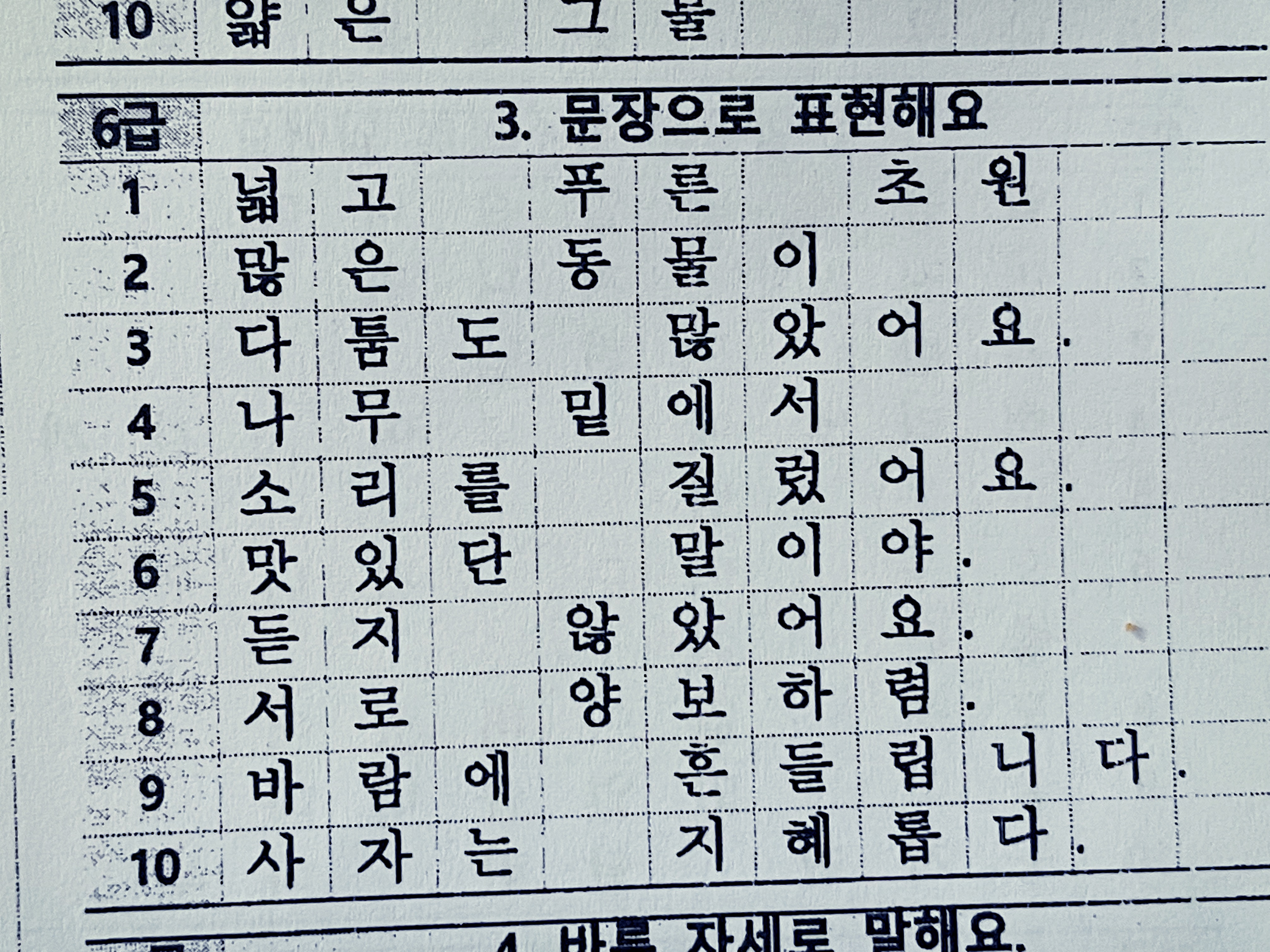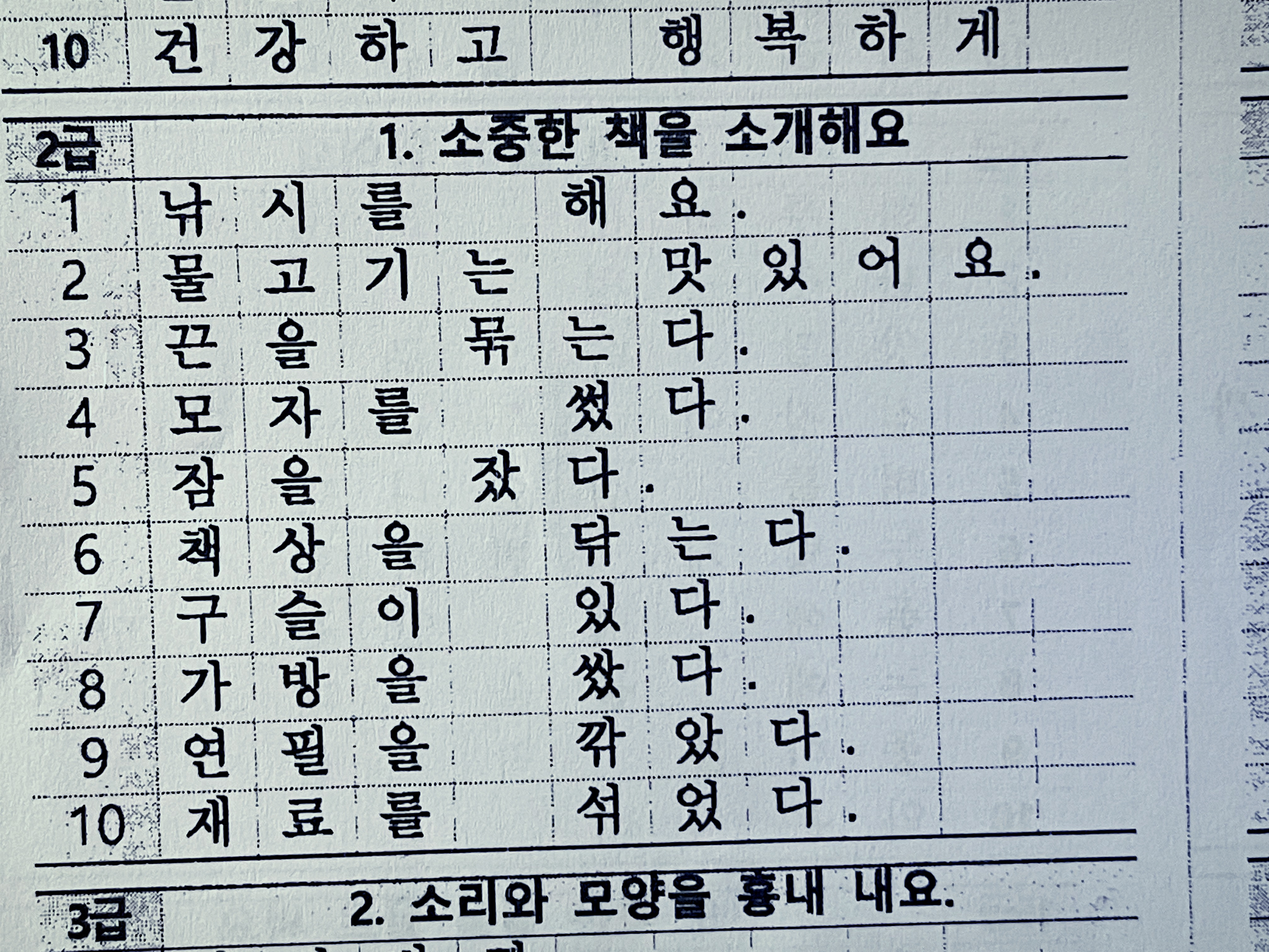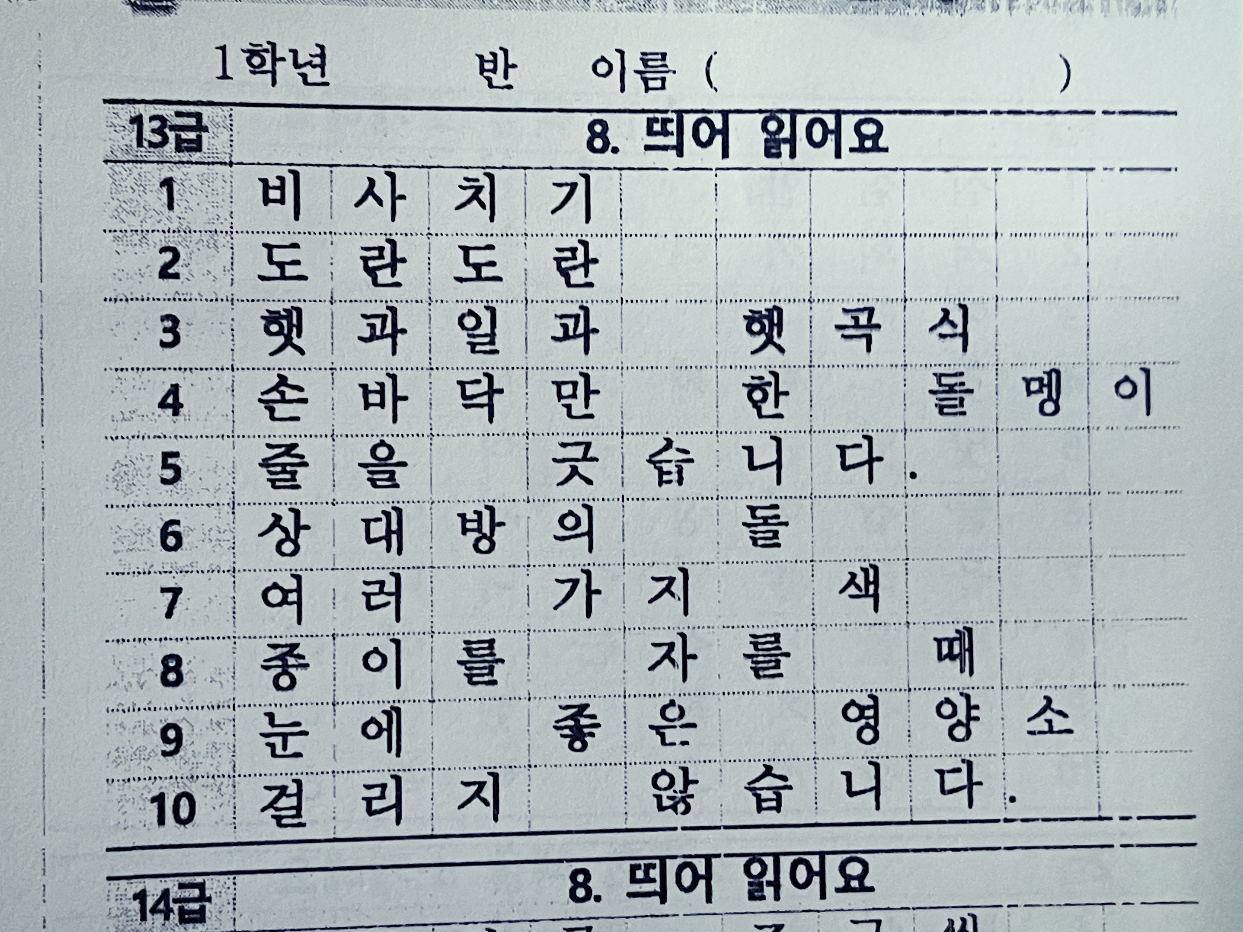 초등학교 1학년 받아쓰기 급수표